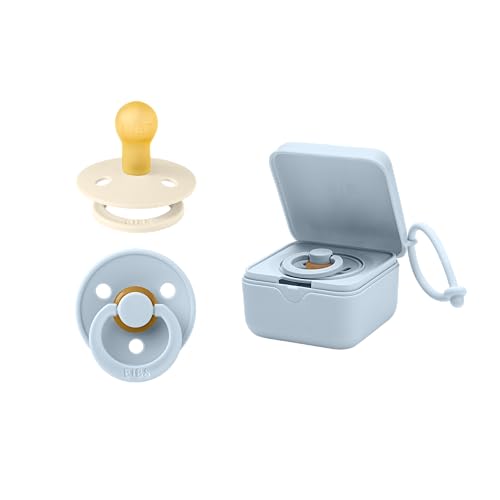 BIBS Napplåda paket – färgglada nappar rund naturlig gummibröstvårta och steriliseringslåda – komplett set för glada bebisar – storlek 1 (0-6 månader)