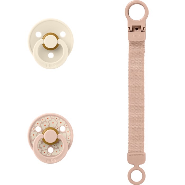 BIBS Colour Pacifier & Loop Clip Gift Set Latex 0+ Månader Size 1 Blush 2 st