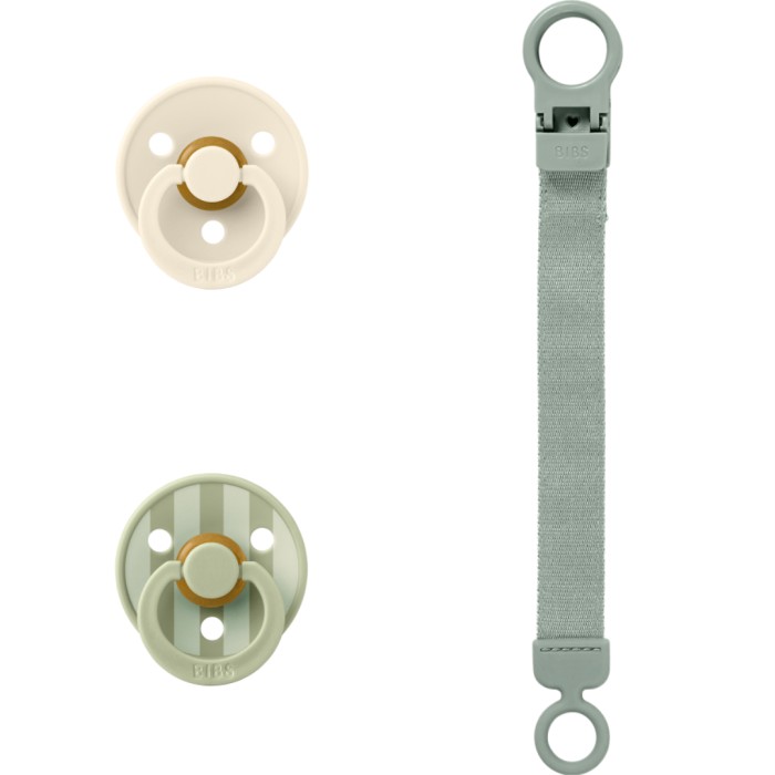 BIBS Colour Pacifier & Loop Clip Gift Set Latex Size 1, Sage