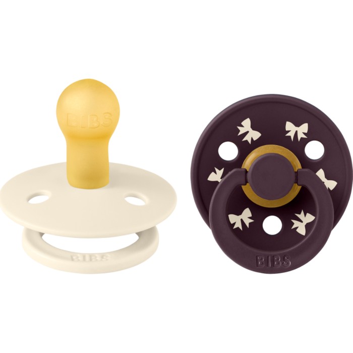 BIBS Pacifier Colour Holiday Bow 2-pack Latex Size 1, Ivory/Plum