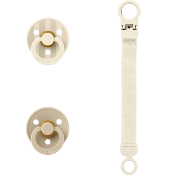 BIBS Colour Pacifier & Loop Clip Gift Set Latex 0+ Månader Size 1 Ivory 2 st