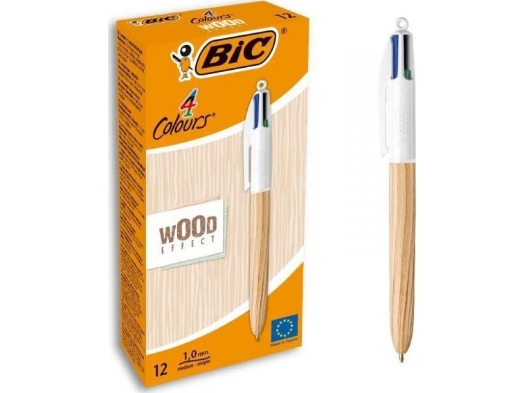 Kulpenna BIC 4 Colours Wood 1mm 12st