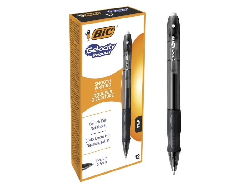 Bic Velocity - Rollerball-Penna - Svart - Gelbläck - 0.7 Mm - Medel - Indragbar (Paket Om 12)