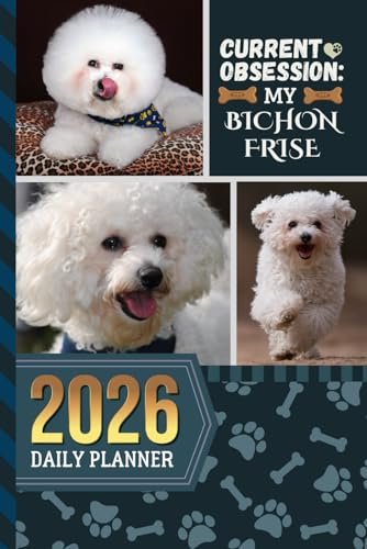 2026 Daily Planner: Hardcover / One Page Per Day / 6x9 Dated Organizer With Hourly Diary - 1 Hour Time Slots / To Do List / Notes Section / Scheduling Gift / Bichon Frise Dog Art Cover