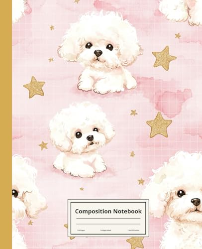 Vintage Bichon Frise Composition Notebook: 110 pages, College Ruled, 7.5 x 9.25