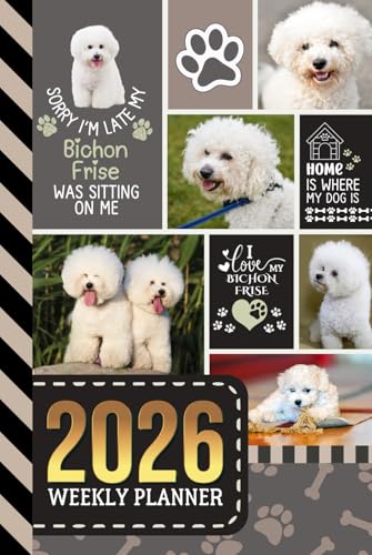2026 Weekly Planner: Hardcover / 6x9 Dated Diary With To Do List - Habit Tracker - Notes Section / Agenda Gift / Bichon Frise Dog - Funny Quote Animal Art Cover