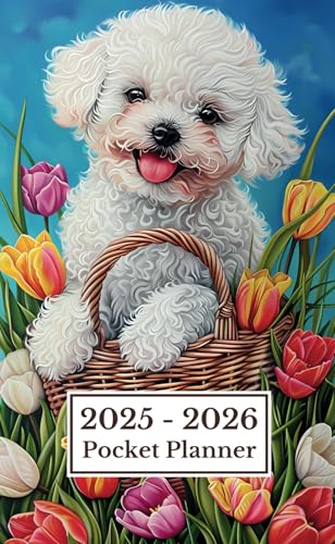 Dog Pocket Planner 2025-2026: Small 2-Year Monthly Calendar Agenda for Purse | Cute Bichon Frise Dog Flowers Cover Design