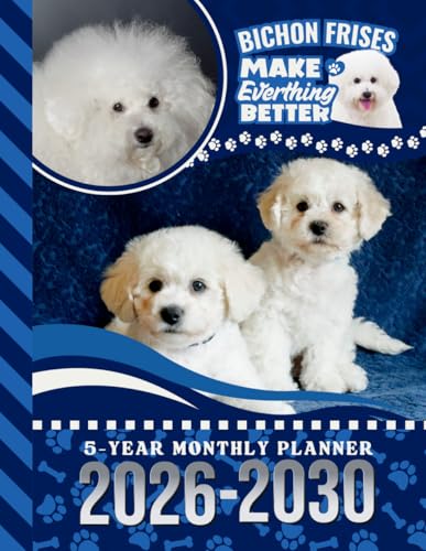 5-Year Monthly Planner 2026-2030: Hardcover / Dated Large / 60 Month Agenda / With Notes Pages - To Do List / Bichon Frise Dog Art Cover Design