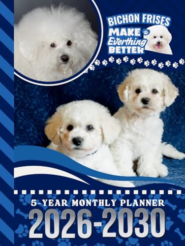 5-Year Monthly Planner 2026-2030: Dated Large / 60 Month Agenda / With Notes Pages - To Do List / Bichon Frise Dog Art Cover Design