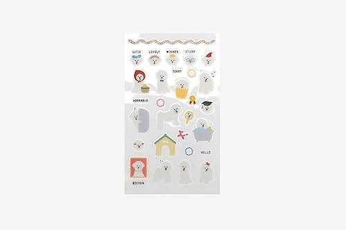 Dailylike Klistermärken pvc daglig klistermärke bichon frise olika former och mönster 9x18,5cm.