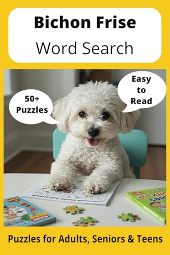 Bichon Frise Word Search Puzzle Book: Word Searches with Easy to Read Print about Bichon Frises, Loving Pets, Training and More | 6x9 inches, 110 pages ... Gift for Vacations, Holidays and Free Times