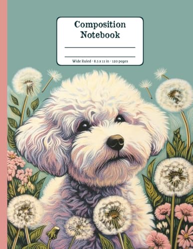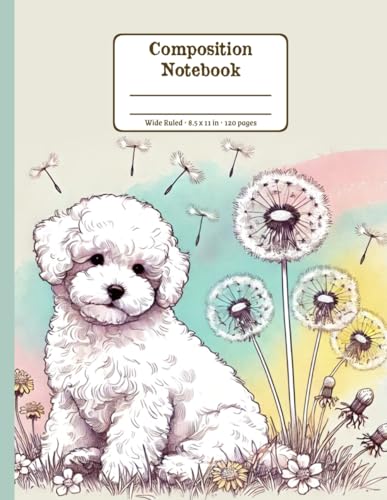 Bichon Frise Dandelion Dream Floral Wide Ruled Paper Composition Notebook: Bichon Frise Dandelion Flowers Floral Diary Journal Notebook; 8.5x11 inch with 120 Lined Page
