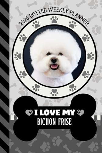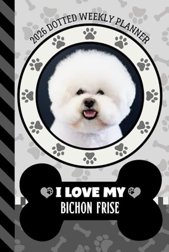 2026 Dotted Weekly Planner: Hardcover / Dated 6x9 Vertical Weekday Layout With Dot Grid Note Pages / Habit Tracker / Jan - Dec / Small Personal Diary / I Love My Bichon Frise Dog Art Cover