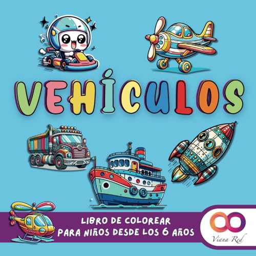 Vehículos Libro de Colorear para Niños desde los 6 Años: 50 diseños con de bicicletas, aviones, camiones, submarinos, naves espaciales, barcos, patinetes, helicópteros y más