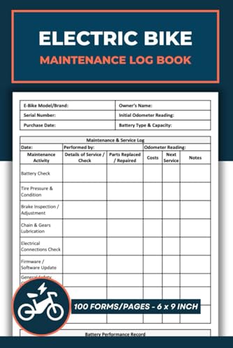 Electric Bike Maintenance Log Book: With Daily Inspection Checklist | E-Bike Repair & Service Record Logbook | Bicycle Repair & Maintenance Journal Forms