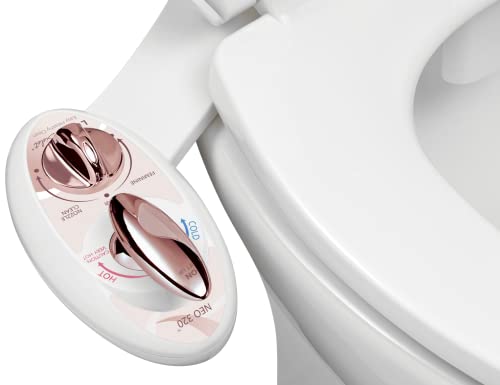 LUXE Bidet NEO 320 Varmt och kallt vatten, självrengörande, dubbla munstycken, icke-elektriskt bidé-tillbehör för toalettsits, justerbart vattentryck, tvätt bak och fram, spakstyrning (roséguld)