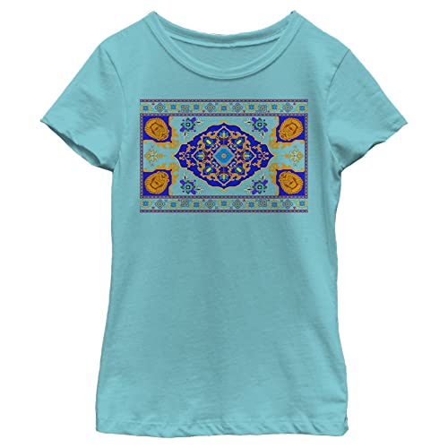 Little Big Disney Aladdin Live Action Magic Carpet Panel Print Girls Short Sleeve Tee Shirt, Tahiti Blue, XL, Tahiti Blue, XL