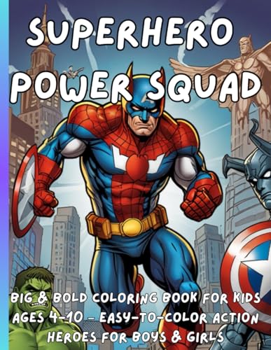 Superhero Power Squad, Big & Bold Coloring Book for Kids Ages 4-10: Easy Superhero Coloring Pages for Kids Ages 4-10 – Big Bold Action Heroes, Fun ... Boys & Girls, Great Gift for Creative Kids