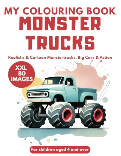 My colouring book Monster Trucks for children ages 4 and over: XXL 80 images realistic & cartoon monstertrucks, big cars & action