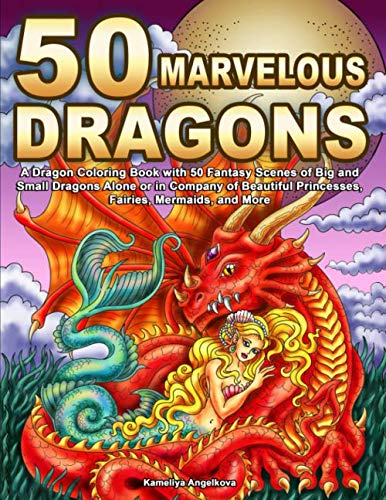 50 Marvelous Dragons: A Dragon Coloring Book with 50 Fantasy Scenes of Big and Small Dragons Alone or in Company of Beautiful Princesses, Fairies, Mermaids, and More