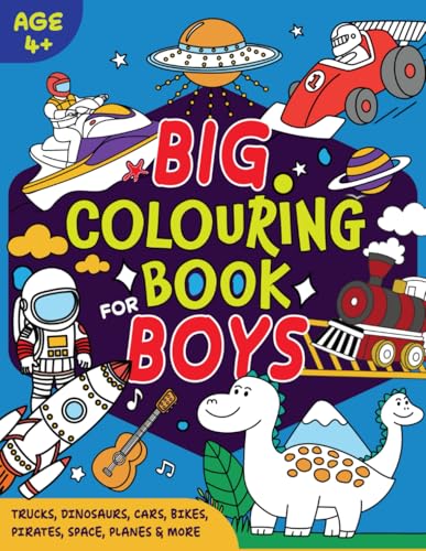 Big Colouring Book For Boys. Age 4+ Children. Bold and Easy: Trucks, Dinosaurs, Cars, Bikes, Pirates, Space, Planes & More
