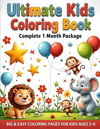 Ultimate Kids Coloring Book: Fun Animals, Ocean Creatures, Flowers & Bikes: Big & Easy Coloring Pages for Kids Ages 3–6