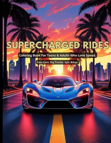 Supercharged Rides: Coloring Book for Teens and Adults Who Love Speed. Fast Cars, Big Trucks & Epic Bikes