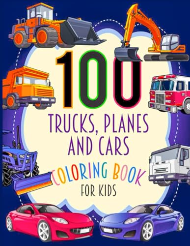 100 Trucks, Planes and Cars Coloring Book For Kids: This Big Book of Cars, Trucks, Bikes, Trains, Planes and Boats Coloring for kids Ages 3-7,4-8, Boys & Girls for toddler