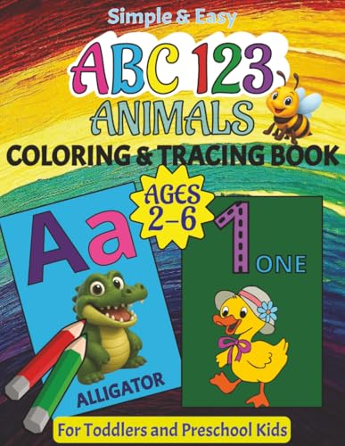 ABC 123 Animals Coloring & Tracing book: Simple & Easy |Color 50+ Cute Animals, Birds, Alphabets, Numbers and more For Kids| For Ages 2-6 years |Big ... | Fun filled activity and Coloring Pages
