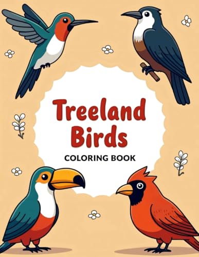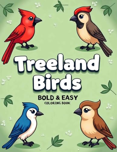 Treeland Birds: Coloring Book for Young Adults and Kids with Bold and Big Coloring Pages for Relaxation Highlighting Birds, Wildlife, Forest, Trees and More