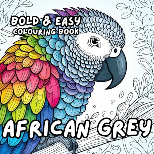 AFRICAN GREY PARROT COLOURING BOOK: for Adults and Kids, Bold and Easy, Simple and Big Designs for Relaxation Featuring a Variety of Cute Birds