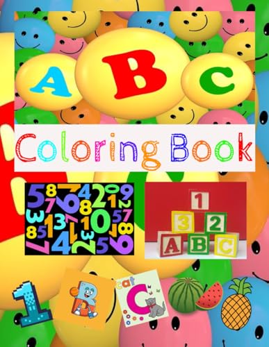 ABC And 123 Coloring Book: Colorful Animals, Birds, Vehicles, Fruits, Toys And Alphabets For Boys and Girls. Big Letters And Numbers Coloring Book With Thick Lines For Toddlers Age 3-5