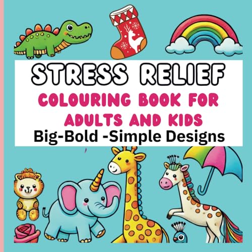 STRESS RELIEF - COLOURING BOOK FOR ADULTS AND KIDS: - Bold and Easy, Simple and Big Designs for Relaxation Featuring Animals, Birds, Flowers, Fruits, Vegetables, Vehicles, Cute Things And Many More.