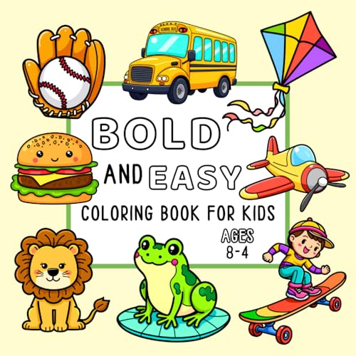 Bold And Easy Coloring Book For Kids Ages 8-4: 50 Simple and Big Designs for Boys & Girls Featuring Animals, Birds, Toys, Vehicles, Fruits, And Many More to Relaxation