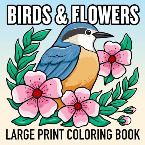 Bold and Easy Birds and Flowers Large Print Coloring Book: 40 Big and Simple Designs for Adults and Seniors