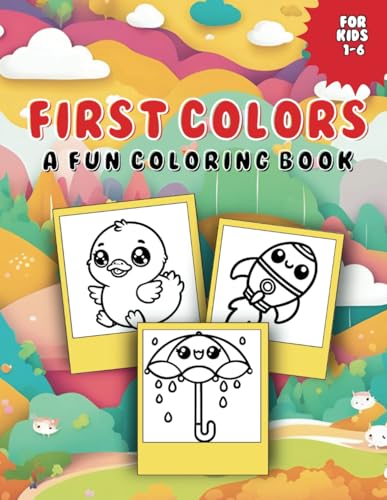First Colors A Fun Coloring Book: 64 Big, Thick-Outlined, Clean, Simple, Fun, and Easy-to-Color Illustrations – Animals, Birds, Vehicles, Fruits, ... for Toddlers and Kids ages 1-2 | 2-4 | 4-6 |