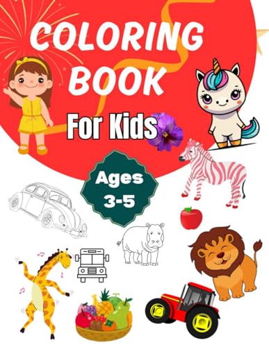 New Coloring Book for Kids 3-5 yrs: Cute Animals, Vehicle, Unicorn, Birds, Fruits & Others | Big A4 Size & Simple Preschool and Kindergarten: Coloring ... and Simple Pictures To Learn and Color