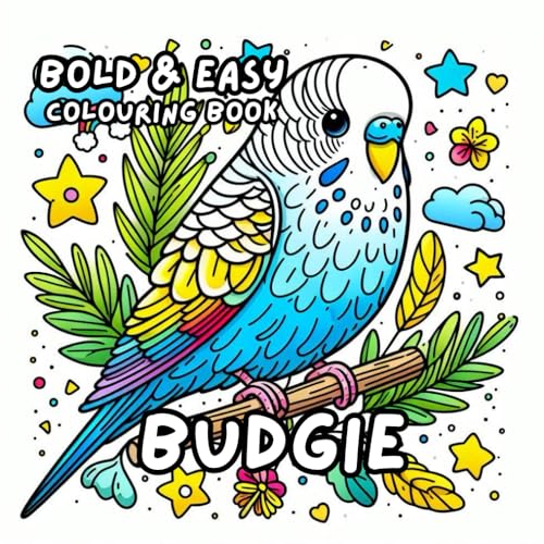 BUDGIE COLOURING BOOK: for Adults and Kids, Bold and Easy, Simple and Big Designs for Relaxation Featuring a Variety of Cute Birds