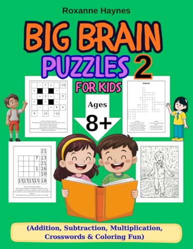 Big Brain Puzzles 2 for Kids Ages 8+: Addition, Subtraction, Multiplication, Crosswords & Coloring Fun