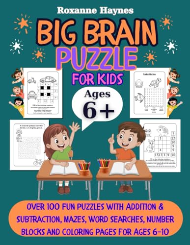Big Brain Puzzles for Kids: Over 100 Fun Puzzles with Addition & Subtraction, Mazes, Word Searches, Number Blocks and Coloring Pages for Ages 6-10