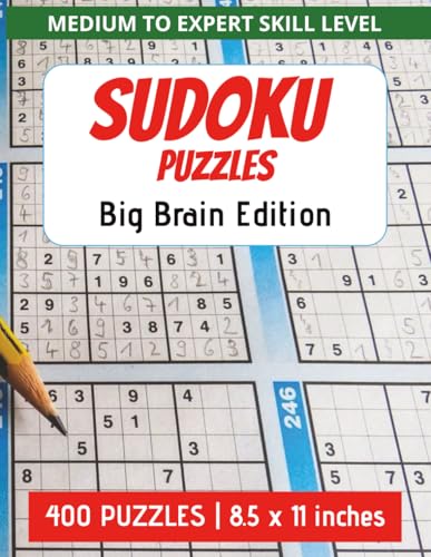 SUDOKU PUZZLES - BIG BRAIN EDITION: Brain Games for Adults, Seniors & Teens | Medium to Expert Skill Level | Puzzle Book with Solutions | Fun & Challenging Sudoku puzzles | Large 8.5 x 11 inches
