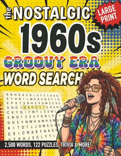 The Nostalgic 1960s Large Print Word Search: 122 Retro Word Puzzles & Trivia: A Groovy 60s Gift Book with Big Font Brain Games for Seniors and Older Adults