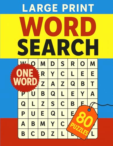 1 Word Word Search Puzzle Book – Large Print for Adults: 80 Fun and Relaxing 1 Word Word Search Puzzles for Seniors and Adults | Big Font Brain Game for Stress Relief and Focus