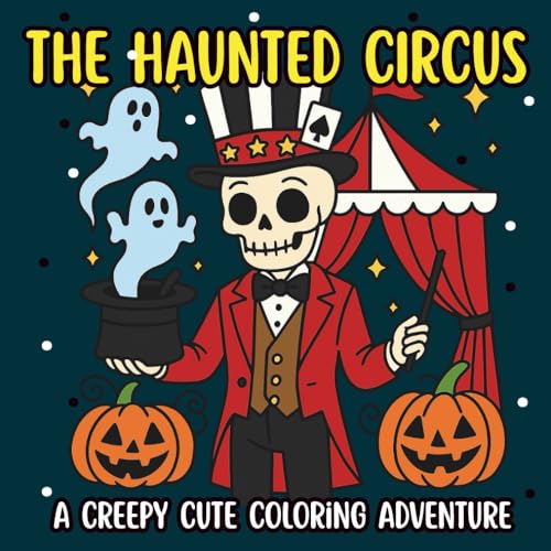 The Haunted Circus: A spooky but playful Halloween coloring book featuring haunted rides, ghostly games, and whimsical big-top fun for teens and adults.