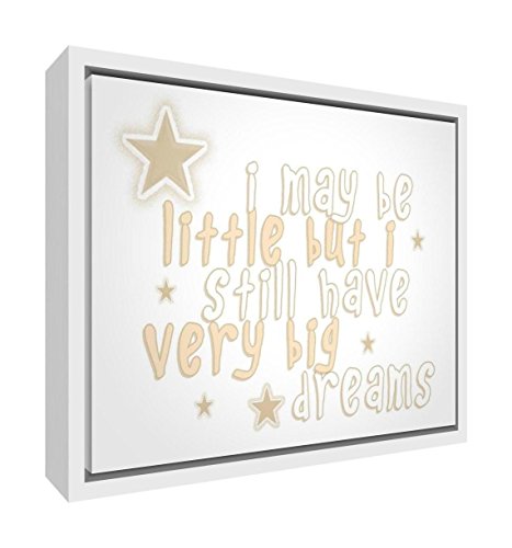 Feel Good Art ekotryckt och inramad barnkammare kanvas, massiv vit träram (64 x 44 x 3 cm, stor, beige, I may be Little But I Have Very Big Dreams)