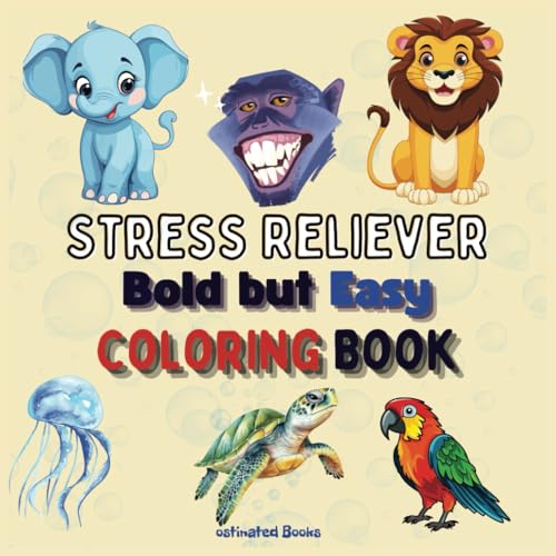 Stress Reliever: Bold but Easy Coloring Book: for Adults and Kids, Bold but Easy, Simple and Big Designs for Relaxation Featuring Animals