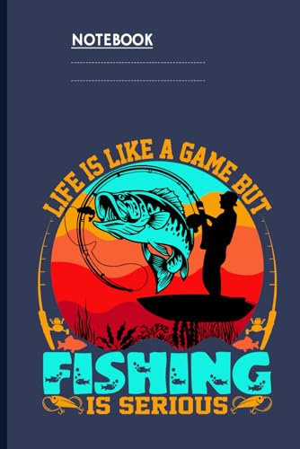 Life Is Like A Game But Fishing Is Serious With Man Catching Big Fish At Sunset: Notebook