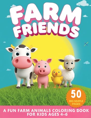 Farm Animals Coloring Book for Kids Ages 4-6: 50 Big & Simple Pages | Fun and Easy | Farm Friends: Cow, Horse, Chicken, Pig and More