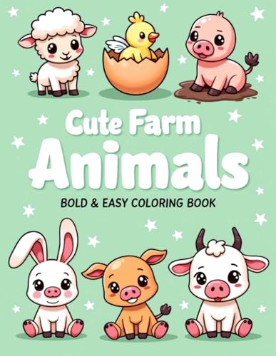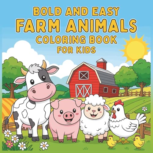 Farm Animals Bold And Easy Coloring Books For Kids: Farm Scenes With Animal Like Cow, Pig, Sheep, Chicken, Duck, Rabbit, .. In Big, simple, fun, cute designs, 8.5 x 8.5 inches
