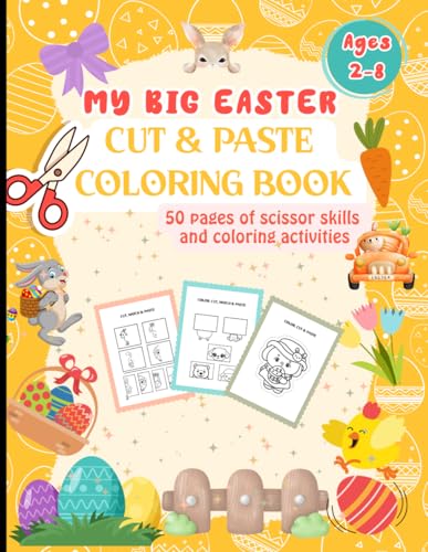 My Big Easter Cut and Paste Coloring Book: Color and Scissor skills activity book for kids, toddlers; Includes Eggs, Bunny, Chicken and more